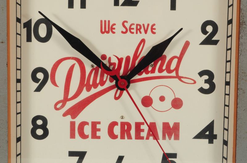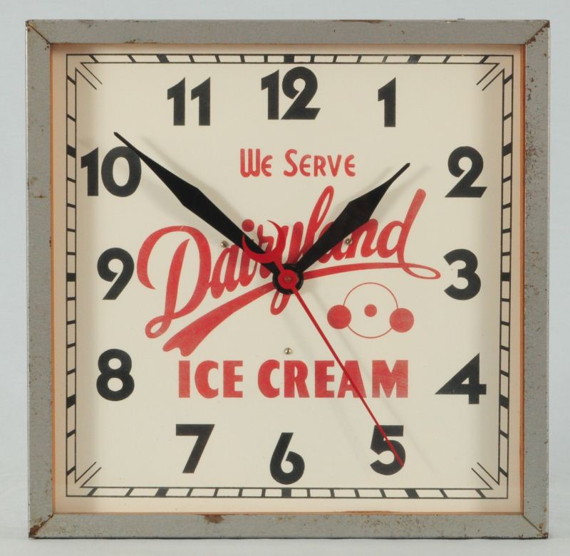 Dairyland Ice Cream Advertising Clock, Measures 15" x 15"