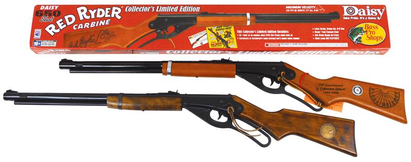 Daisy BB guns (3), Red Ryder Model 1938B w/Pheasants Forever Medallion, Red Ryder Collector's Ed Bass Pro Shops-Model 991938-833 in never opened box & Red Ryder 25th Anniversary "A Christmas Dream"-Model 1939B (1983-2008), all Exc cond w/boxes & 36"L.