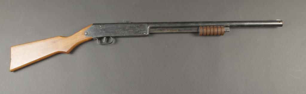 Pump Action BB gun with compass and sundial mounted in the stock.