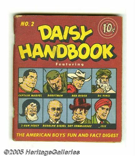 <B>Daisy Handbook #2 (Daisy Manufacturing Co., 1948) Condition: VG+.</B></I> Pocket-sized collection of several comic features, including Captain Marvel, Ibis the Invincible, Red Ryder, Boy Commandos, and Robotman. Basil Wolverton art. Overstreet 2005 VG 4.0 value = $78. <I>From the Larry Jacobs Collection</B></I>.