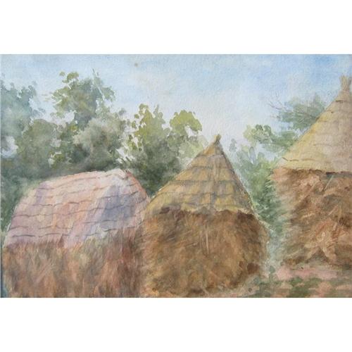 Haystacks, Watercolour, 6.75" x 9.5" (17.15 x 24.13cm.) Unsigned