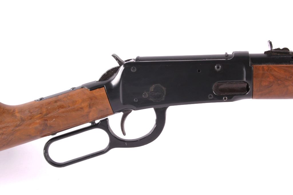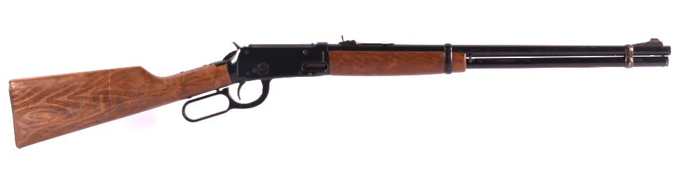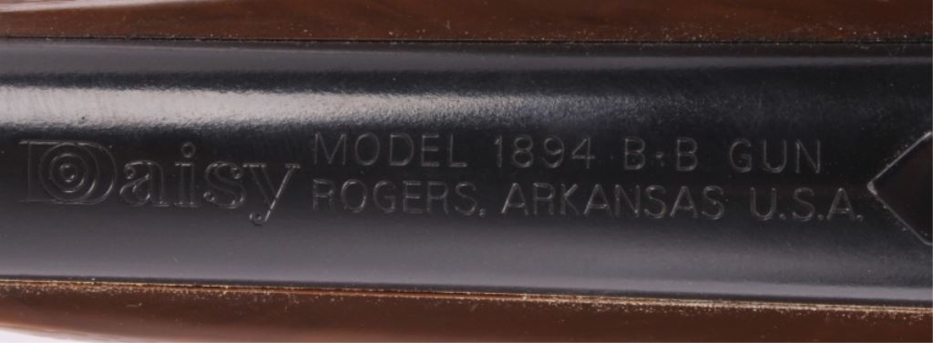 This is a Daisy Rogers, Arkansas, USA Model 1894 BB gun. The rifle has a lever action with hammer trigger and is in good working condition. The piece is modeled after the Winchester Repeating Arms Model 1894 lever action rifle. Measures 38"l. RARE.