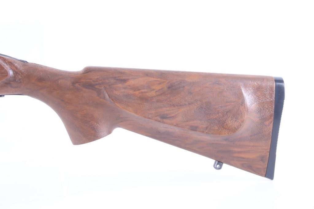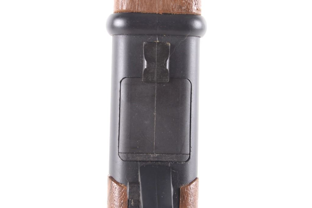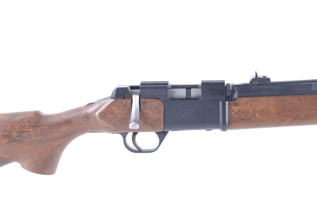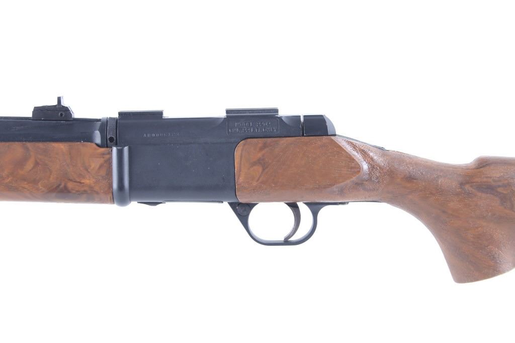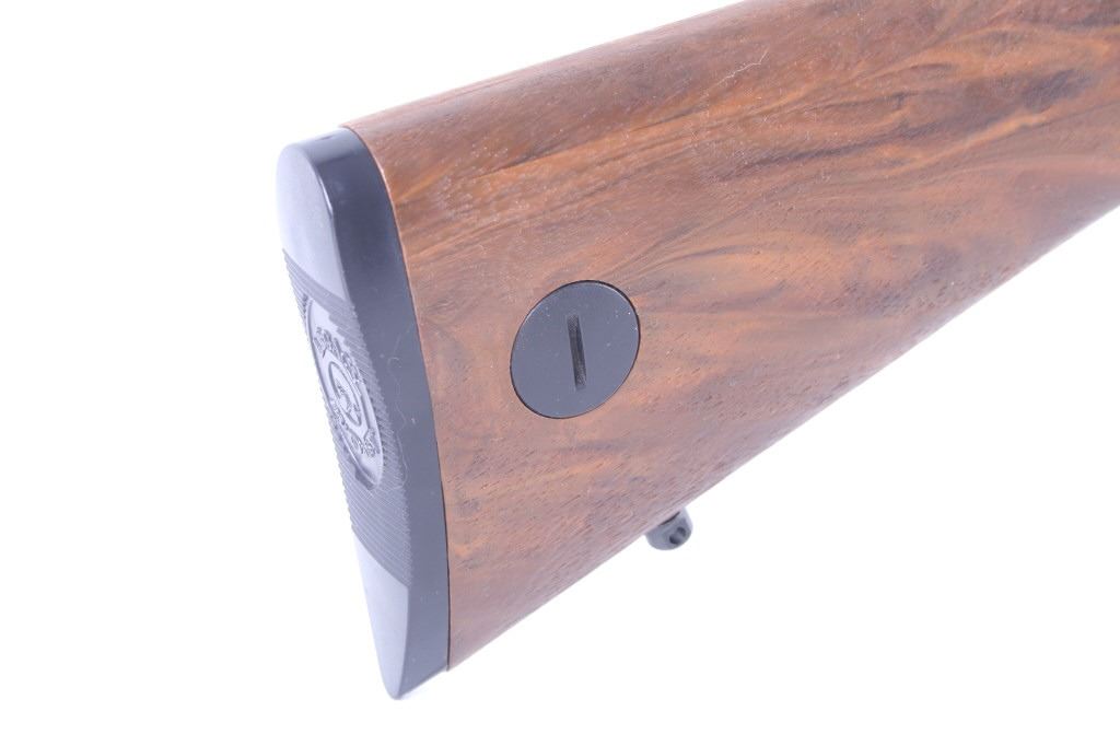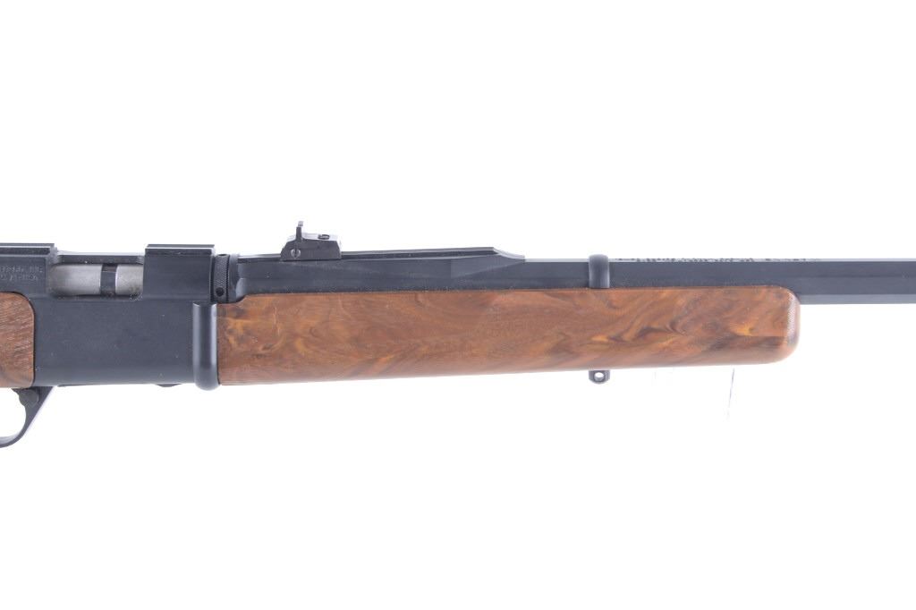 Featured in this lot we have a Daisy Legacy Model 2202 bolt action rifle chambered in .22 caliber with its original box. The rifle was manufactures by Daisy between 1988 - 1991and are hard to find. The model 2202 was part of a push by Daisy in the 80's and into the early 90's to try to get into true firearms using their quality history of making BB and pelt guns for over 100 years. This rifle displays a The rifle displays a 18" long octagonal barrel, aluminum frame, and synthetic stock and foregrip modeled after wood with a black finish across the metal. The frame of the rifle is marked "Model 2202 CAL .22 L.R. ONLY" on the left side and the right marked "Daisy MFG. Co. Inc. Rogers, AR USA". The top of the barrel is marked "Warning! For Safe Operation, Read Owners Manual Before Using.". The rifle comes with its original box marked "Legacy" with original papers. The rifle shows good condition with a tight action and trigger system with the box showing wear. Serial Number: AB0006123. This is a modern firearm and requires a FFL transfer or NICS background check.