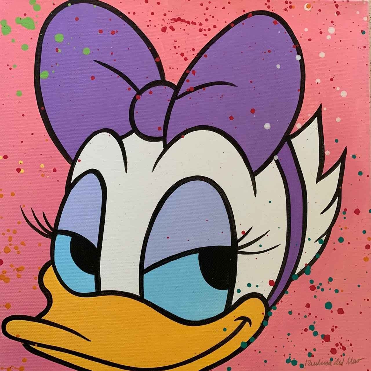 Daisy in Pink by Del Mar, Paulina. Original One-of-a-Kind Hand Signed Mixed Media Stretched. Dimensions: 12 x 12. Excellent Condition.