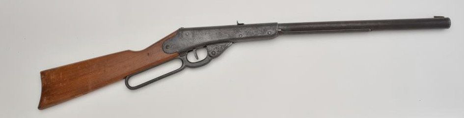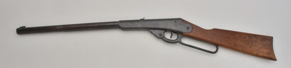 Daisy lever action BB gun Model B with wood stock and name printed in ink “Philip Mollen Ross” on left side of stock in small letters; working at time of description. From an old estate. Est.: $25-$50.