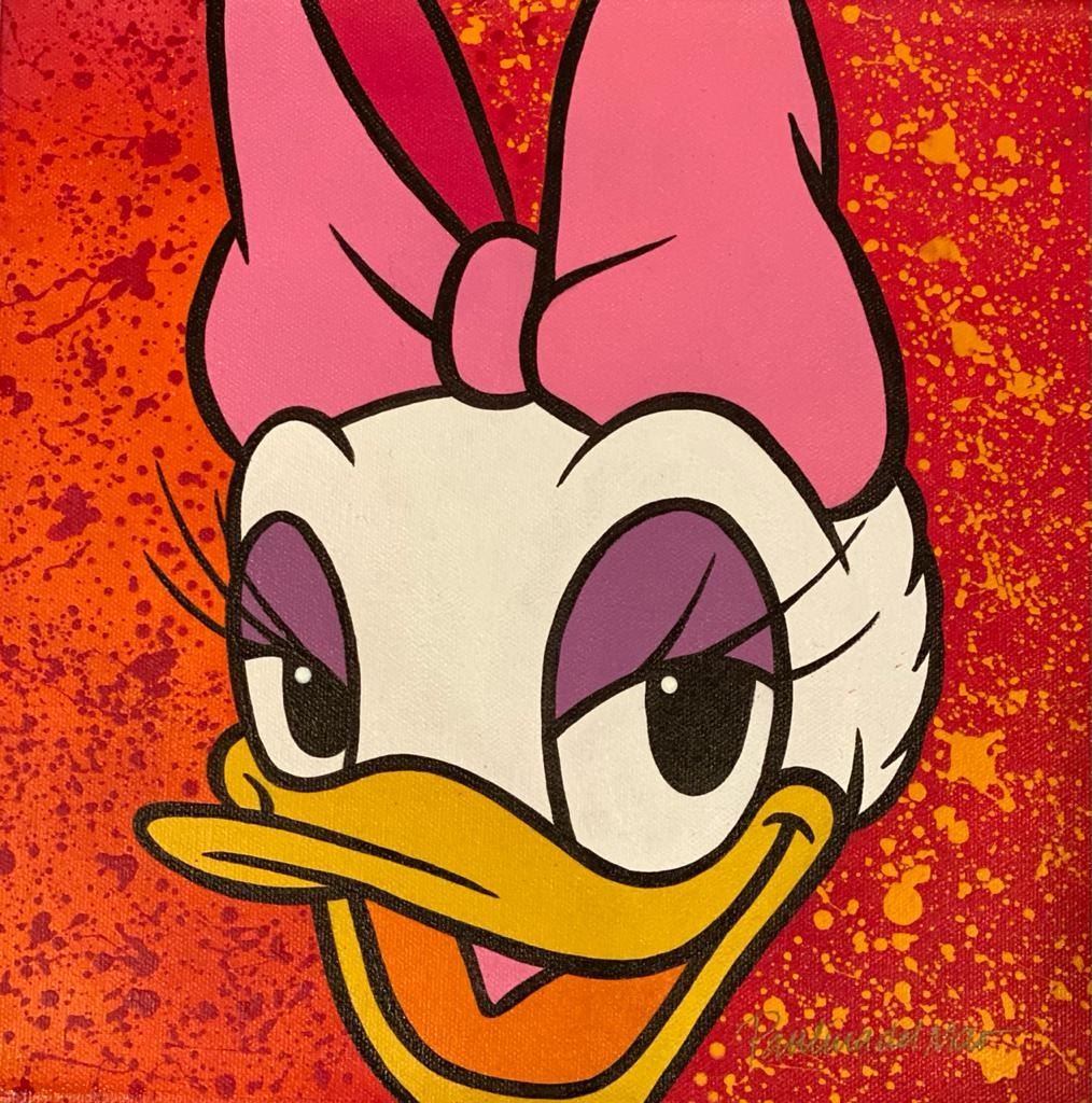 Daisy with Pink Bow by Del Mar, Paulina. Original One-of-a-Kind Hand Signed Mixed Media with Acrylic Stretched. Dimensions: 12 x 12. Excellent Condition.