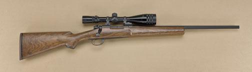 Dakota Arms Co. short Mauser action sporting rifle, .22-250 caliber, serial #1820. “Dakota Arms 78 Sturgis, South Dakota”. Barrel measures 21”, finely made semi-target type stock, with select burl wood grain. Finequality workmanship throughout. Mounted with Weaver 4x16 power variable scope mounted on factory mounts. The condition is fine to excellent and shows slight use only. 98-99%. From the Robert Petersen collection. Est:$900 - $1,800