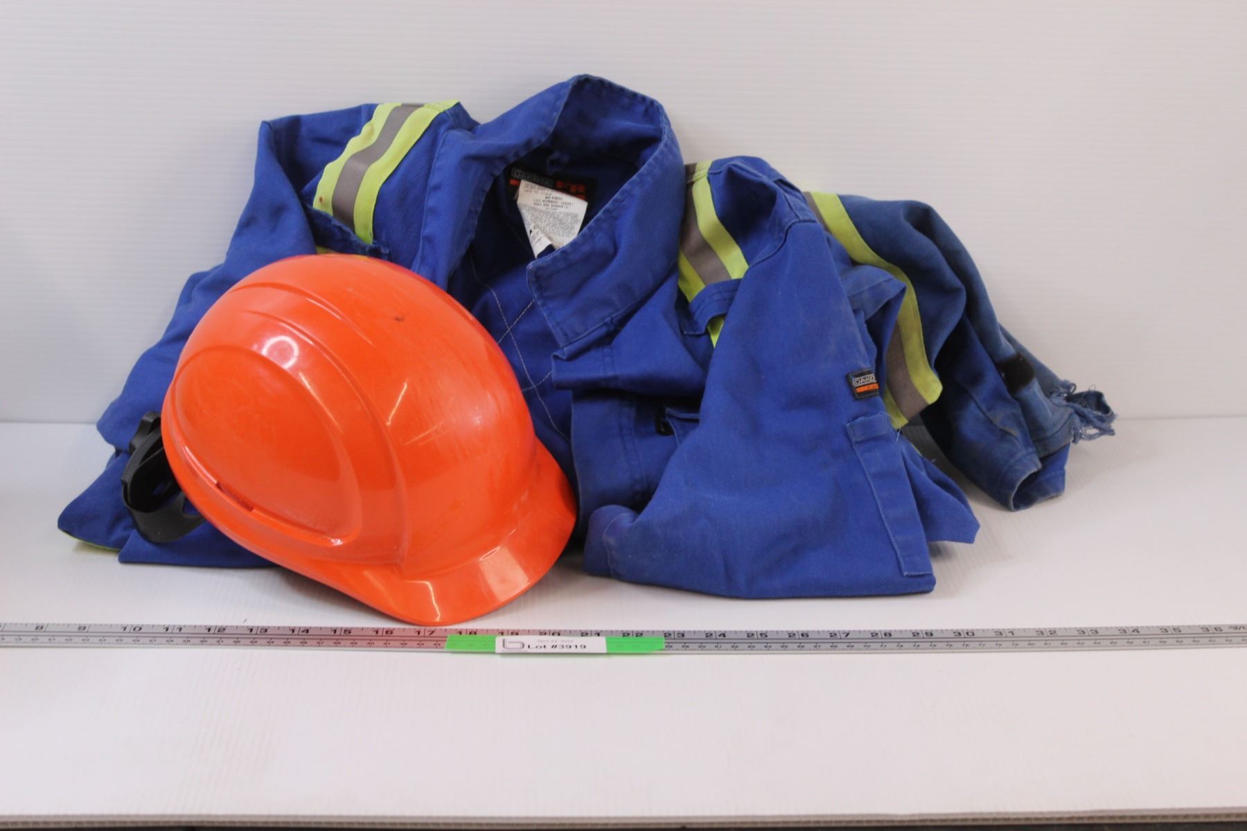 Dakota Used Fire Resistant 2 XL Sized Work Coveralls with Orange Hard Hat
