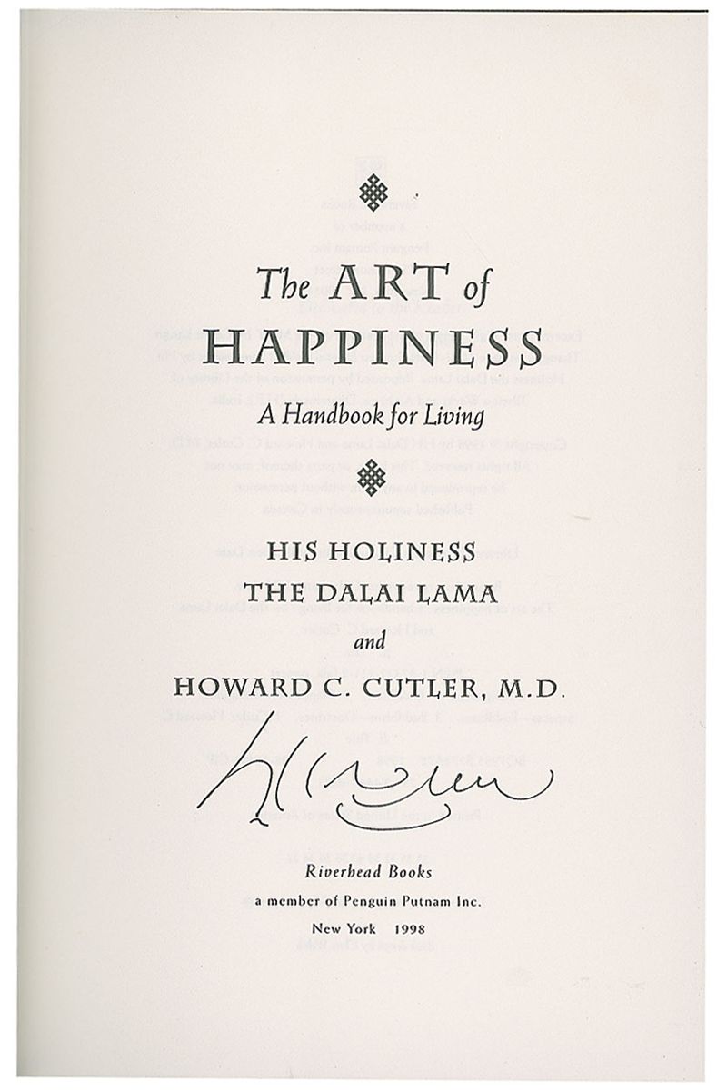 Signed book: The Art of Happiness. Later printing. NY: Penguin Books, 1998. Hardcover with dust jacket, 6 x 8.5, 322 pages. Signed on the title page in black ink. In fine condition, with some light rubbing to dust jacket.