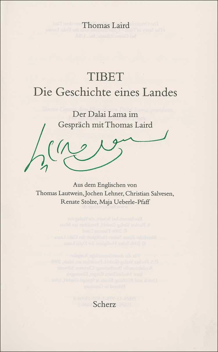 Signed book: Tibet (German edition). Later printing. Frankfurt: Scherz, 2006. Hardcover with dustjacket, 5.5 x 8.75, 589 pages. Signed on the title page in green felt tip. In fine condition. RRAuction COA.