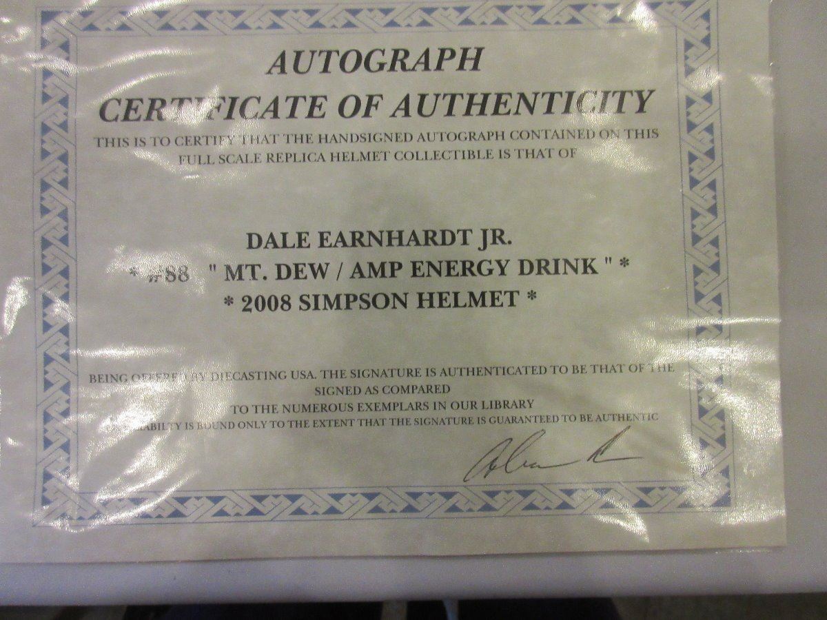 Dale Earnhardt # 88 "MT DEW / AMP ENERGY DRINK" * 2008 Simpson Helmet with Autograph Authentic Certificate MIB