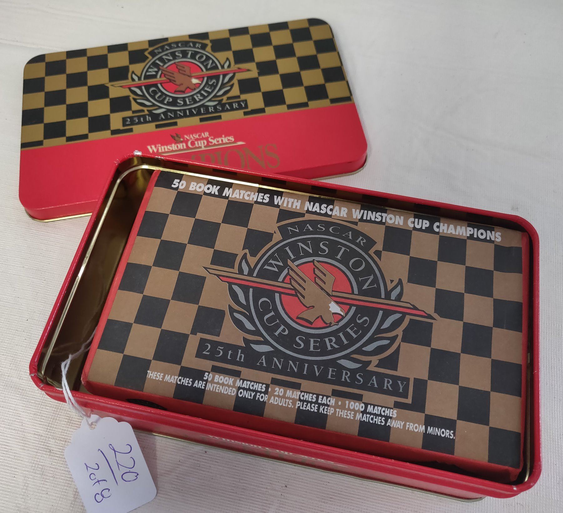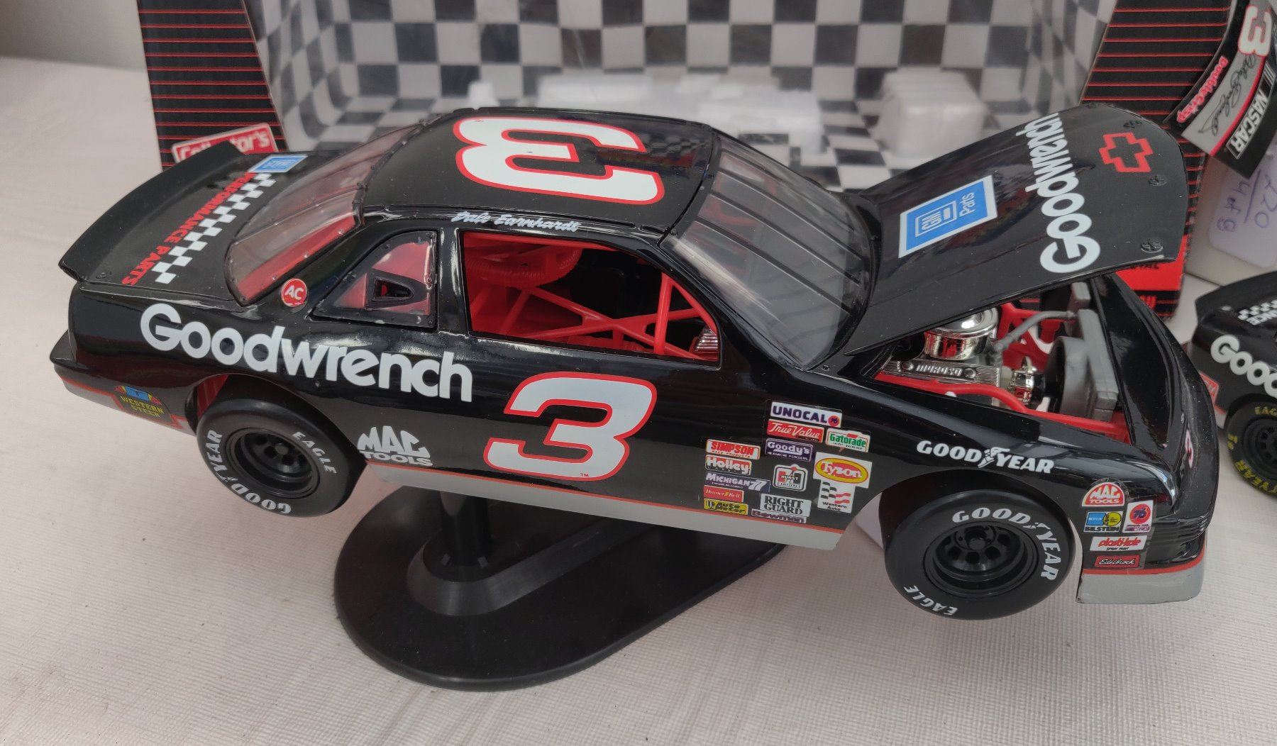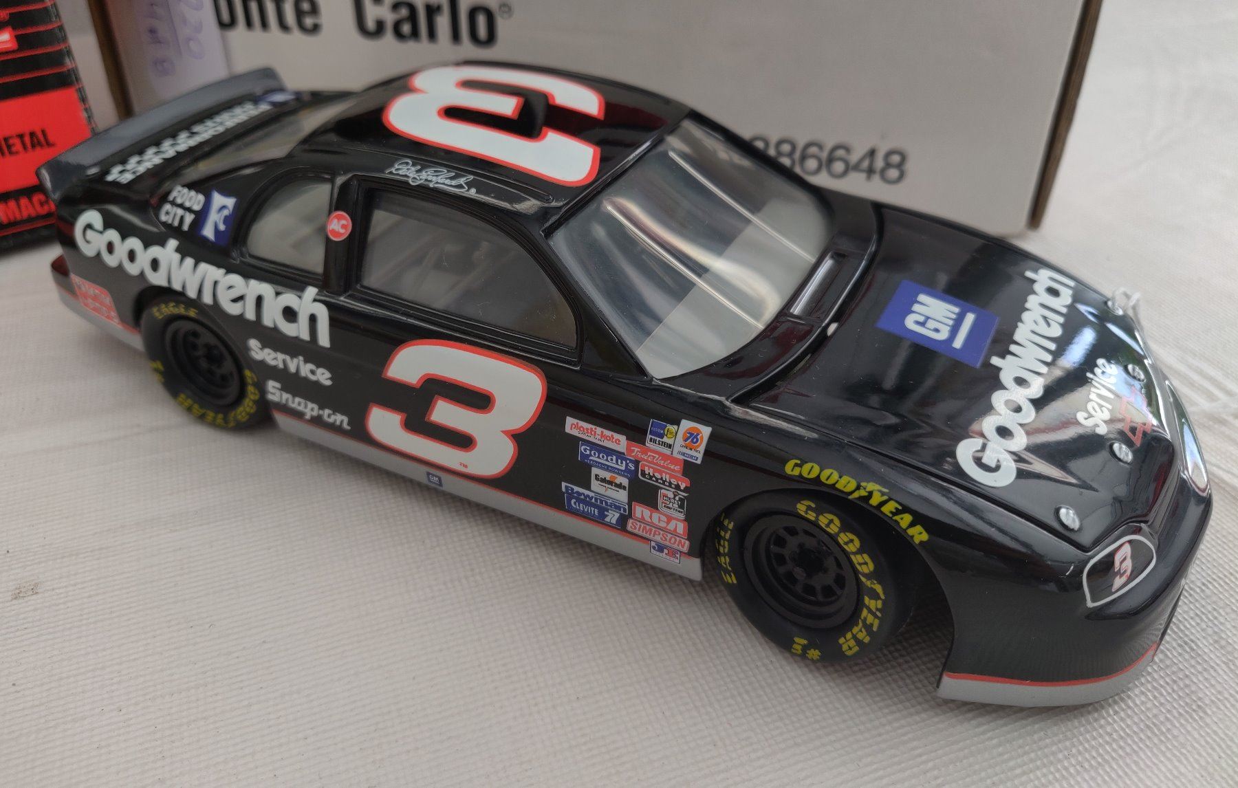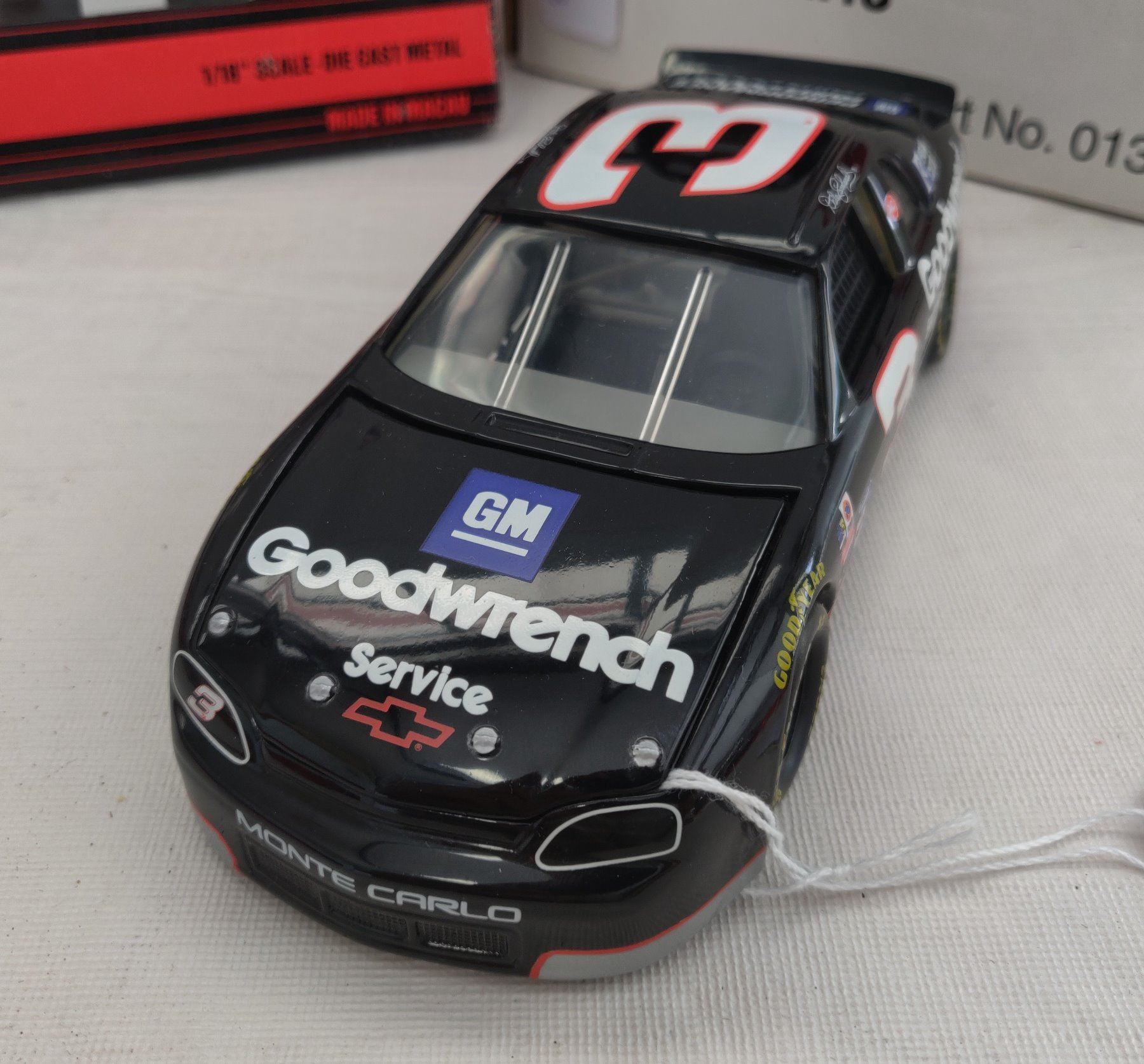 Dale Earnhardt Memorabilia Collection, modern items. Made of die cast metal, plastic, ceramic mugs, etc., the 2 largest toy models measure from 8 1/4" to 10 1/2" long. Included in lot are 2 models of Dale Earnhardt's #3 car, 2 smaller toy cars, a matchbox of 1000 matches, keychain, tire gauges and mugs with some original packaging. Shipping: $45.00 USA estimate only, w/insurance and signature, due to size and weight.
