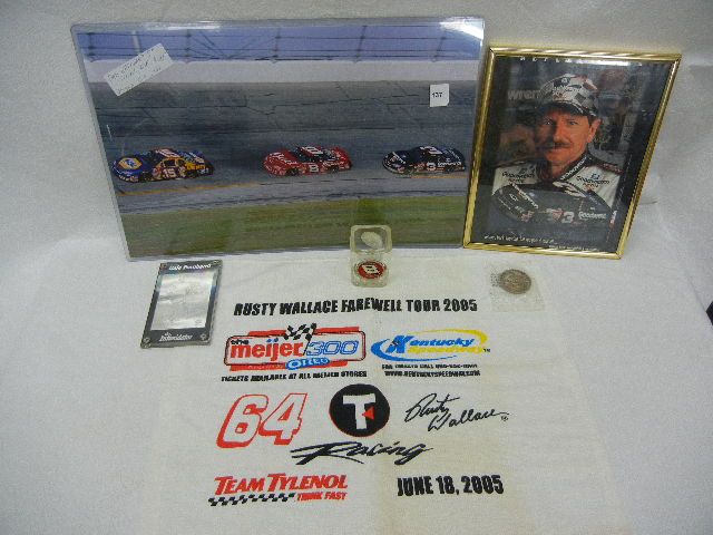 Dale Earnhardt, Sr. Framed Picture, Race Photograph, and Collector Card, Dale Earnhardt, Jr. Shot Glass