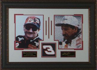 American auto racing driver widely regarded as stock car racing's greatest star. 1979 NASCAR Rookie of the Year. Earnhardt won an unrivaled seven Winston Cup championships and a total of 76 races. Earnhardt died in a crash on the last lap of the 2001 Daytona race. This is a Dale Earnhardt (1951-2001) 11x14 Photos (x2) with Laser Engraved Replica Signature Tribute Framed. Museum Quality Framed as shown to an overall size of 20x28"
