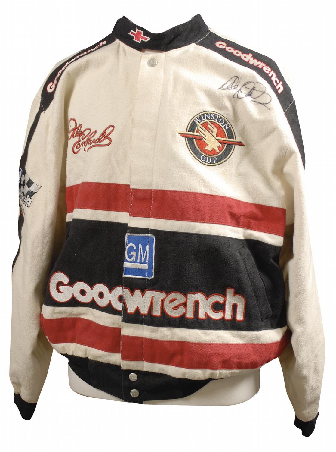 Dale Earnhardt GM Goodwrench Winston Cup champion jacket, by the Jeff Hamilton Racing Collection, signed on the left breast in black felt tip by Earnhardt. In fine condition.