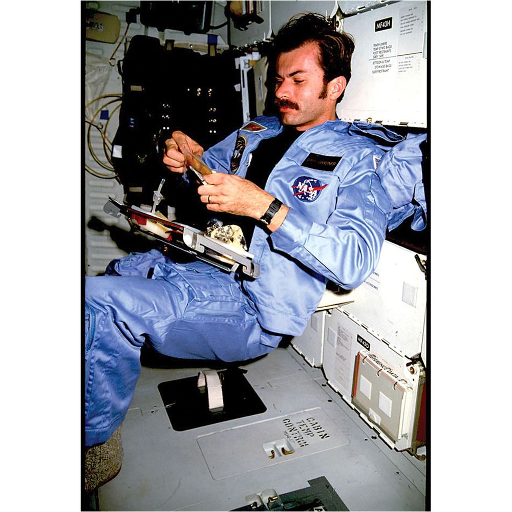 STS-51-A launched from Kennedy Space Center on November 8, 1984, and returned 7 days, 23 hours, and 44 minutes later on November 16th. During the flight, the Space Shuttle Discovery completed 127 orbits of Earth and logged over 3.2 million miles. Dale Gardner flew as a mission specialist, and-with Joe Allen-performed two spacewalks during the flight to retrieve the malfunctioning communications satellites Palapa B2 and Westar 6. These untethered EVAs marked the final use of the Manned Maneuvering Unit (MMU) propulsion pack, which was judged to be too risky to use after the Challenger disaster. A super desirable, flight-worn suit from Gardner's historic week-long stint in orbit.