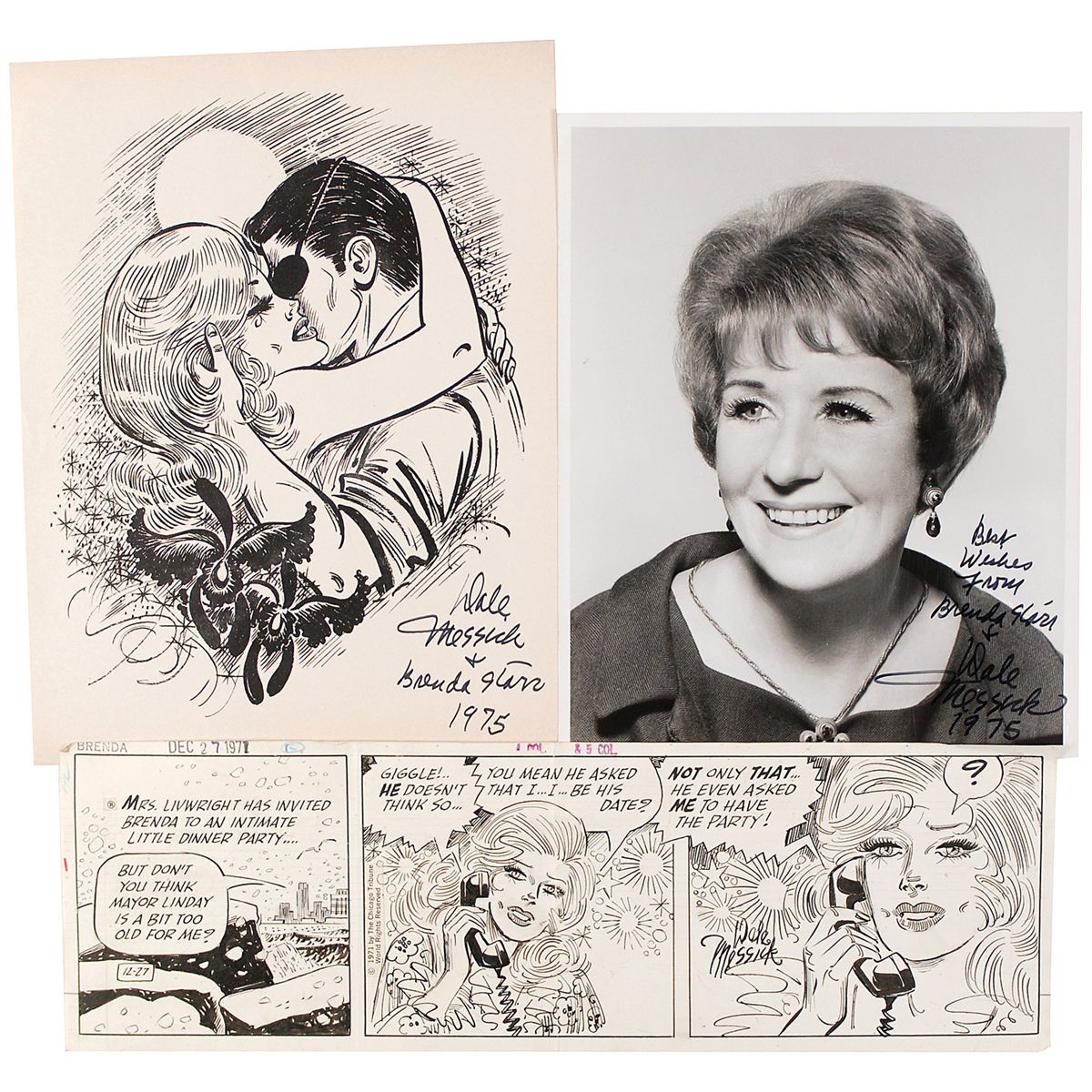 ed in black felt tip, “Best wishes from Brenda Starr & Dale Messick 1975”; and a printed sketch of Brenda Starr, 8.5 x 11, signed in the lower right in black felt tip, “Dale Messick & Brenda Starr 1975.” A central vertical fold and a few stamps and creases to the comic strip, and creases and crazing to the photo, otherwise fine condition.