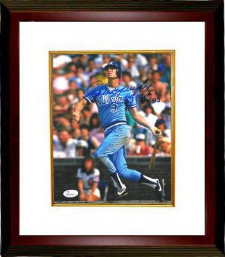 Dale Murphy played for the Atlanta Braves and won consecutive National League Most Valuable Player Awards in 1982 and 1983. He also won the National League's Silver Slugger Award four straight years (1982-1985), and the National League's Gold Glove award five straight years (1982-1986). Dale has hand autographed this Atlanta Braves 8x10 Photo with NL MVP 82, 83 inscription. JSA Hologram and Certificate of Authenticity is included. Custom White Mat and Mahogany Color Framed as shown.