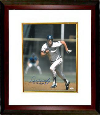 Dale Murphy played for the Atlanta Braves and won consecutive National League Most Valuable Player Awards in 1982 and 1983. He also won the National League's Silver Slugger Award four straight years (1982-1985), and the National League's Gold Glove award five straight years (1982-1986). Dale has hand autographed this Atlanta Braves 16x20 Photo with NL MVP 82, 83 inscription. JSA Hologram and Certificate of Authenticity is included. Custom White Mat and Mahogany Color Framed as shown.