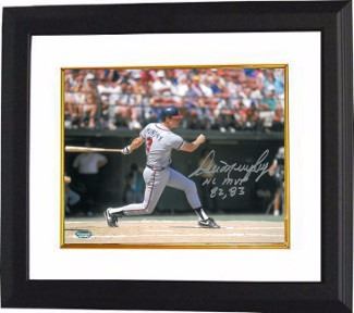 Dale Murphy played for the Atlanta Braves and won consecutive National League Most Valuable Player Awards in 1982 and 1983. He also won the National League's Silver Slugger Award four straight years (1982-1985), and the National League's Gold Glove award five straight years (1982-1986). Dale has hand autographed this Atlanta Braves 16x20 Photo with NL MVP 82, 83 inscription. Schwartz Sports Hologram and Certificate of Authenticity from Athlon Sports is included. Custom White Mat and Premium Black Color Framed as shown.