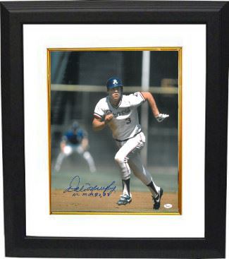 Dale Murphy played for the Atlanta Braves and won consecutive National League Most Valuable Player Awards in 1982 and 1983. He also won the National League's Silver Slugger Award four straight years (1982-1985), and the National League's Gold Glove award five straight years (1982-1986). Dale has hand autographed this Atlanta Braves 16x20 Photo with NL MVP 82, 83 inscription. JSA Hologram and Certificate of Authenticity is included. Custom White Mat and Black Color Framed as shown.