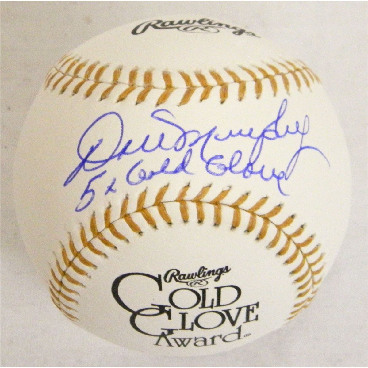 Dale Murphy signed Rawlings Gold Glove logo official MLB baseball with '5x Gold Glove' inscription. Item comes with a Schwartz Sports Memorabilia tamper-proof numbered hologram and Certificate of Authenticity which can be verified online.