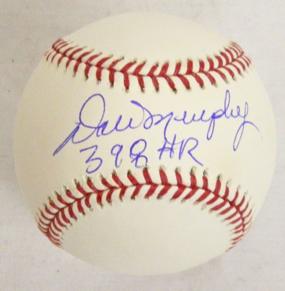 Dale Murphy signed Rawlings official MLB baseball with '398 HR' inscription. Item comes with a Schwartz Sports Memorabilia tamper-proof numbered hologram and Certificate of Authenticity which can be verified online.