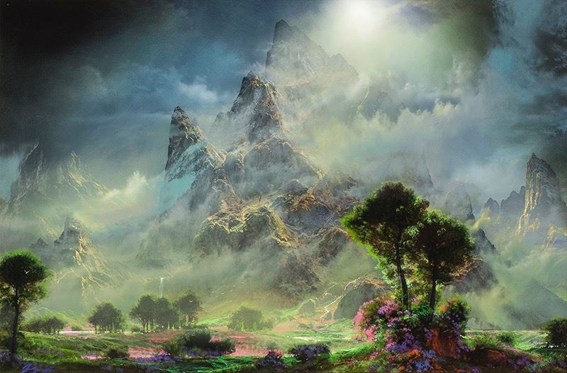 To the unaided eye this painting appears to be in very good condition. Inspection under ultraviolet light reveals no issues or signs of restoration. The work is framed in a very wide, somewhat ornate gold frame with a black panel This frame is in very good condition. Verso: inscribed on canvas in artist’s hand: "In a Past We Dream" by Dale Terbush. Inscribed: Illegible personalized inscription, July 2001.