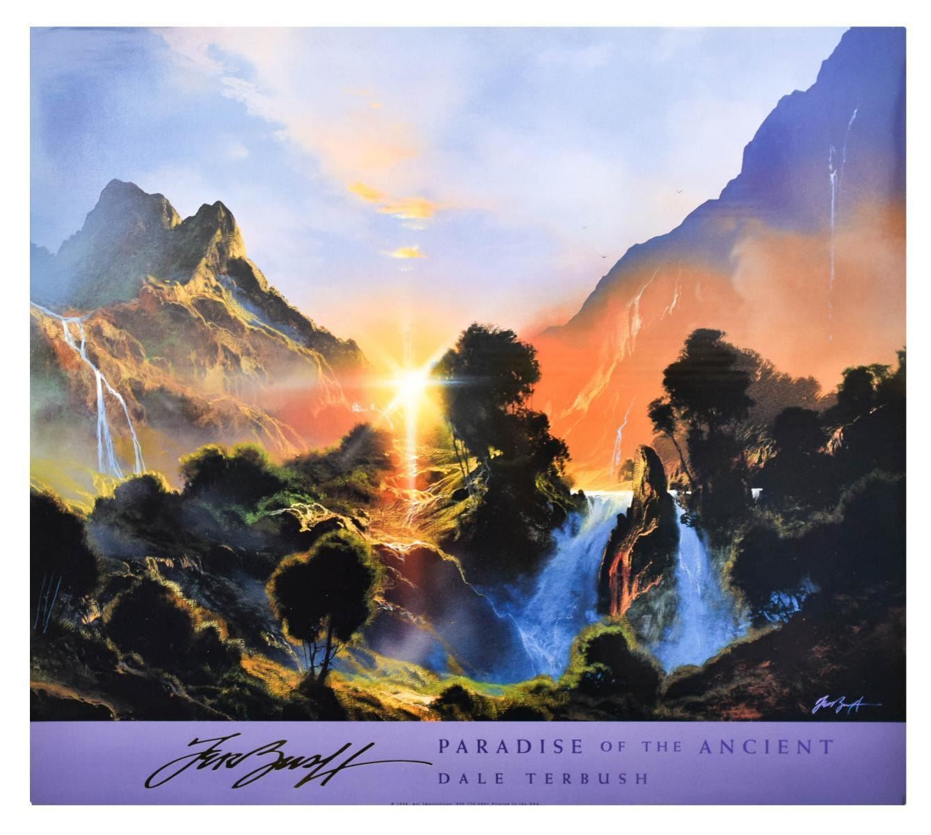 Artist: Dale Terbush. Medium: Lithographic Print Poster. Title: Paradise of the Ancient. Size (Unframed): 27" x 30".