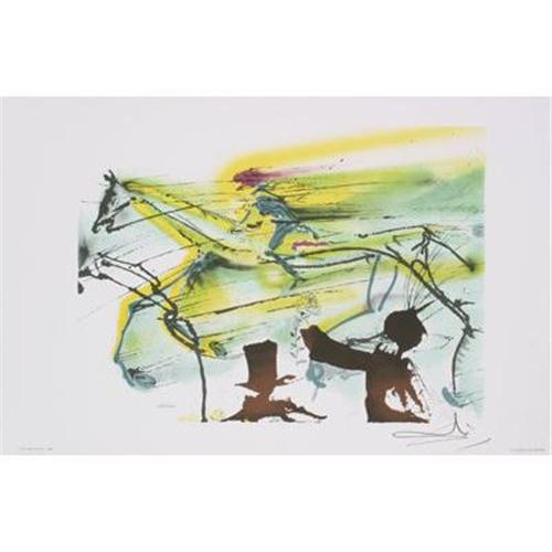 Notes:Signed in the plate lithograph from the portfolio of Les Chevaux de Dali (The Dalinian Horses). The color lithograph printed on Arches paper measures 22 x 14 1/4 inches and shows a plate signature of the artist on the lower right hand side. Type B signature.Don Quixotte was published in 1983 by Armand et Georges Israel Editeurs in Paris, France. The series is not numbered but limited to 4980 copies. It is embossed with Georges Israel Editeur in the lower left side. Le Cheval de Course (The Race Horse) was published in 1983 by Armand et Georges Israel Editeurs in Paris, France and measures 22 x 14 1/4 inches.