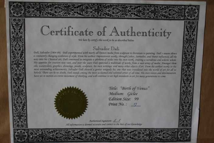 Salvador Dali - "Birth Of Venus" - Limited Edition Giclee - Edition Size 99 - Professionally Framed And Matted - Mint Condition - Signed In The Plate - Numbered In Pencil - Framed Size Appx 33 1/2" X 27 1/2" Comes With Certificate Of Authenticity