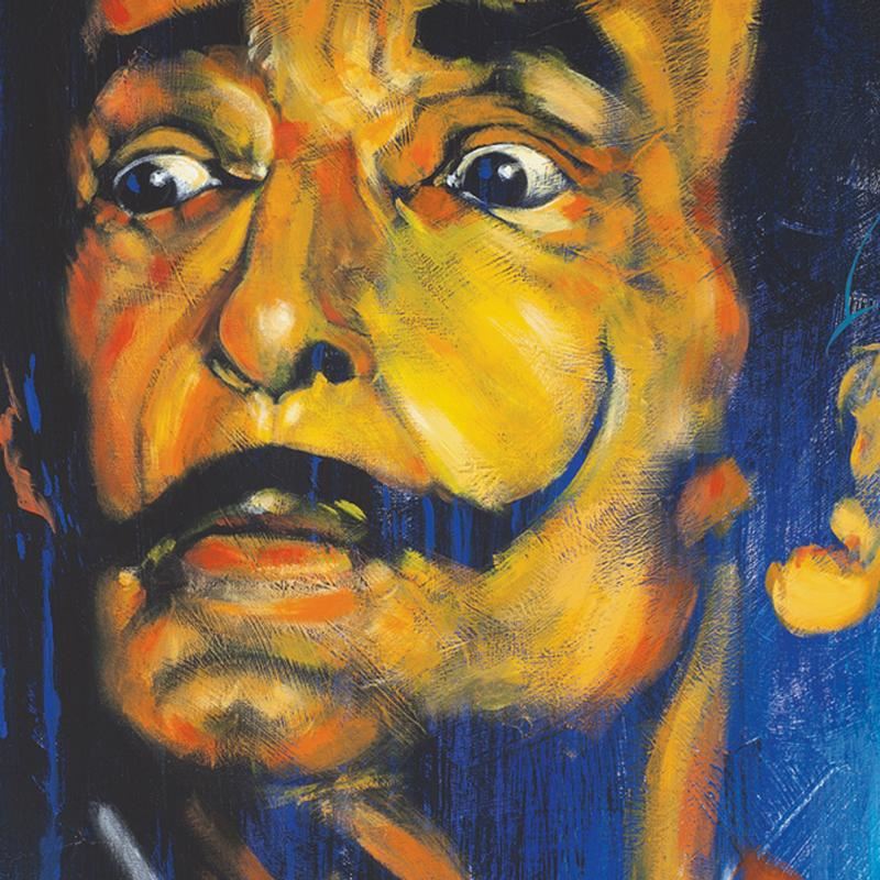 With bright colors and expressive lines, Stephen Fishwick puts a unique spin on pop culture portraits. "Dali" is a limited edition giclee on stretched canvas, numbered and bears the artist's authorized signature. This piece comes gallery wrapped! Includes Certificate of Authenticity! Measures approx. 16" x 20" (image).