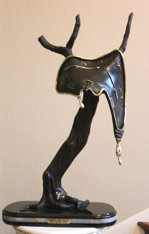 Salvador Dali's - "Tearful Soft Watch" Original Limited Edition Bronze Sculpture - Inspired By The Painting By Salvador Dali - Limited Edition Of 100 - Lost Wax Cast - Magnificent Patina - Mounted On Marble Base - 31.5"H X 17.5"W X 9"D - Signed By The Sculptor "Castano" W/ Copyright Stamp And Date