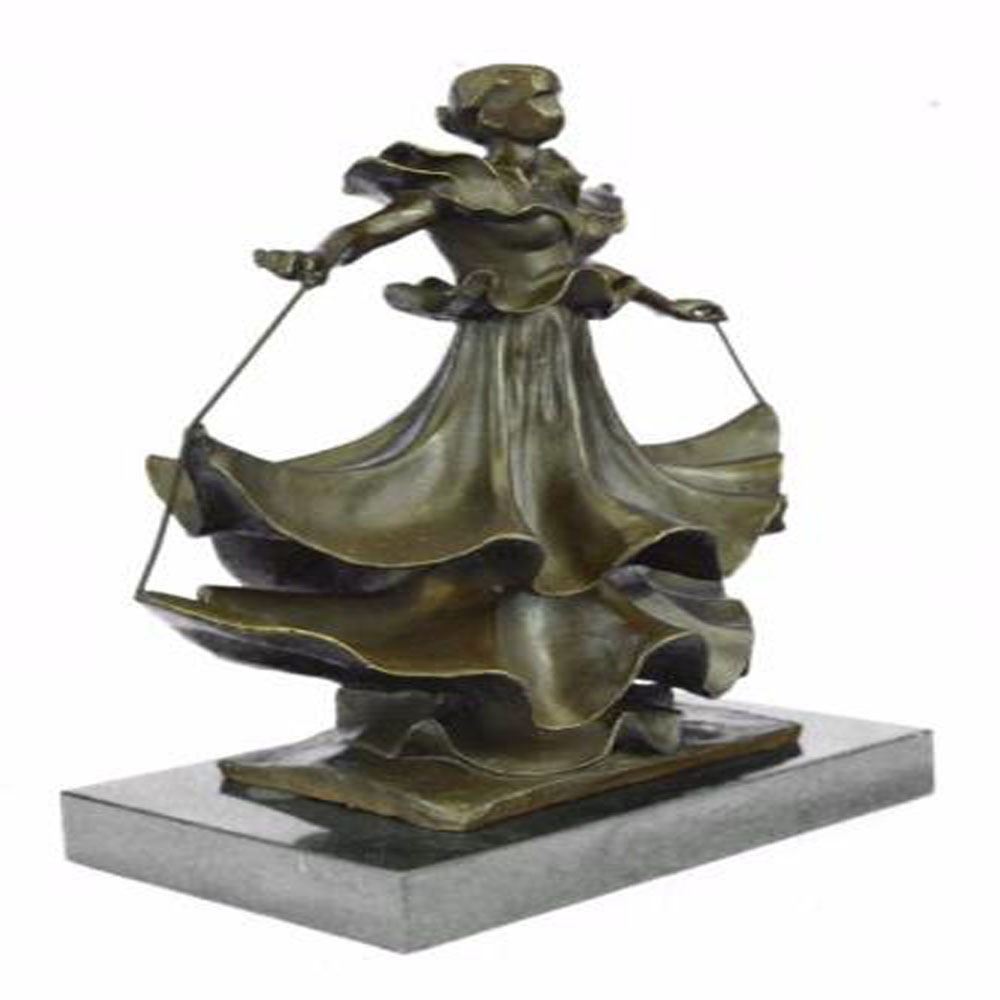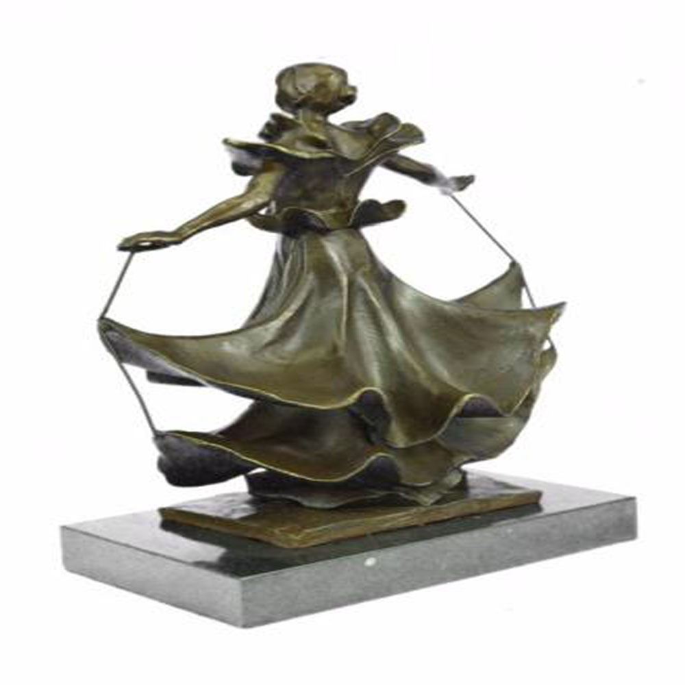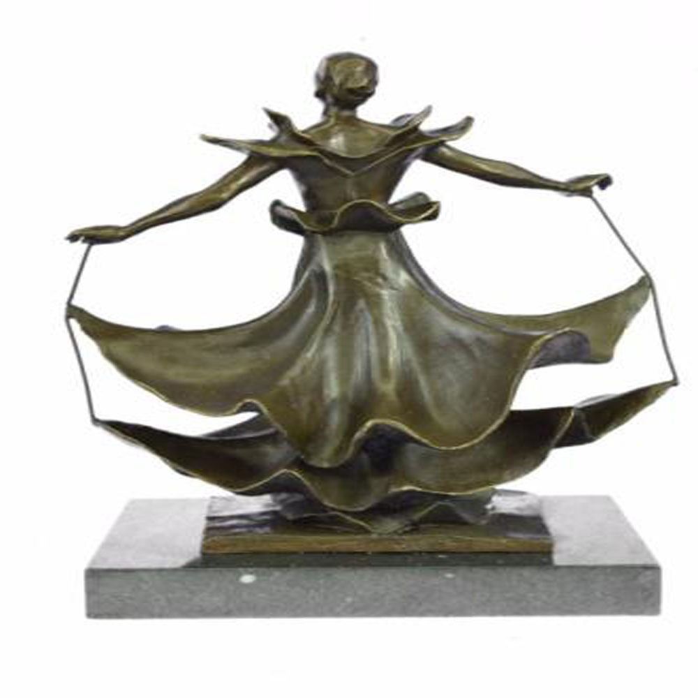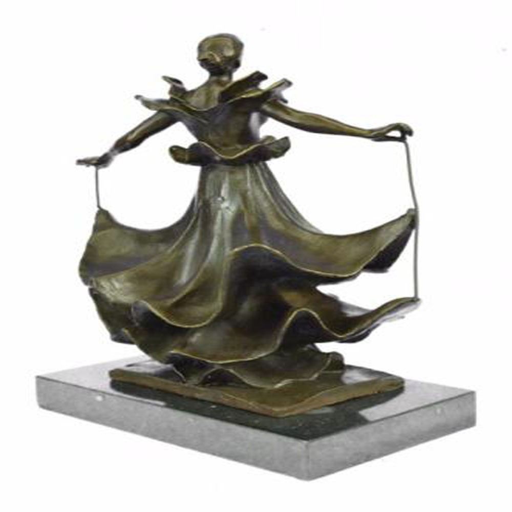 Beautiful Dancer with the layers of her dress floating up as she twirls. This Sculpture was cast using the Lost Wax Method and has a patina. Bronze Dimensions with Marble Base: Height 13 X Width 9 inches. Weight: 15 LBS.