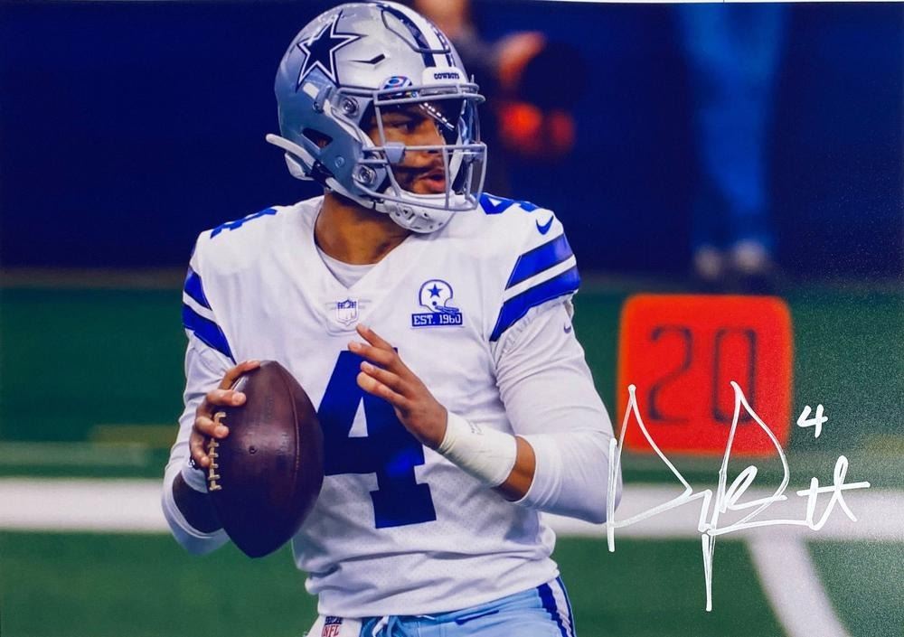 Dallas Cowboys Dak Prescott facsimile signed photo. 8x10 inches. This item is a reprint of an original autograph