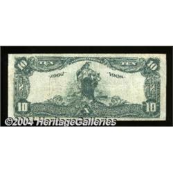 Dallas, TX - $10 1902 Date Back Fr. 621 The Merchants NB Ch. # (S)10331One of the rarest of all of the Dallas banks, as this institution issued Date Backs only for just three years before bowing out in 1915. A mere five examples are listed in the census, with one of those likely forever impounded in the Moody estate holdings. Pleasing Fine+, rare enough to see bidding reach or exceed... <BR><BR><B>Important notice:</B> Heritage usually auctions material at the rate of 200-250 lots per hour. On some occasions eBay Live bid software or the Internet may not be able to keep up with the pace of the auction. We recommend placing a realistic absentee bid now as insurance to avoid disappointment. Occasionally the auctioneer may eliminate or reject an eBay Live bid, and the auctioneer may also reopen a lot after the close of the eBay live bidding (usually because we missed an audience bid), and may reject your bid even if it shows you as the winning bidder. By bidding via eBay Live, you agree that Heritage may award the lot to another bidder at its sole discretion under the circumstances described above or any other reasonable circumstances. Since eBay bids are not shown to us until we open the lot on the floor, we treat those bids just like floor bids. In most cases the floor responds before the eBay bid is presented to us, due to Internet lag time, so for consistency we have made it a policy that floor bids are always considered first over tie eBay live bids. Also please note that all Heritage lots purchased through eBay Live carry a 20% Buyer's Premium. Please make sure you read the Terms and Conditions before you bid. <BR><BR><B>IMPORTANT ANNOUNCEMENT ABOUT RESERVES:</B> Heritage now divulges all reserves on its web site 7 days before every auction. If you want to know whether the reserve on this lot has been met, and if not, what the reserve amount is, please visit this lot page on the HeritageCoin.com web site, or email: bid@HeritageGalleries.com