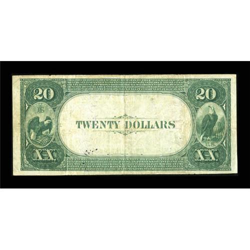 <B>Dallas, TX</B></I> - $20 1882 Value Back Fr. 581 <B>The City NB</B></I> Ch. # (S)2455<BR> A tougher emission for this issuer with only three examples documented and no auction appearance for over five years. Bright with strong signatures along with a touch of roughness along the top margin and a pinhole. <B>Very Fine</B></I>.<BR><BR><b>Shipping:</b> Coins & Currency (<a target="_blank" href="http://www.heritageauctions.com/common/shipping.php">view shipping information</a>)