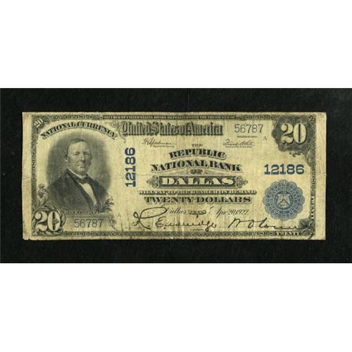 <B>Dallas, TX</B></I> - $20 1902 Plain Back Fr. 661 <B>The Republic NB</B></I> Ch. # 12186<BR> Bold signatures remain on this $20. <B>Very Good.</B></I><BR><BR><b>Shipping:</b> Coins & Currency (<a target="_blank" href="http://www.heritageauctions.com/common/shipping.php">view shipping information</a>)