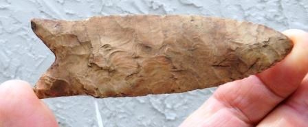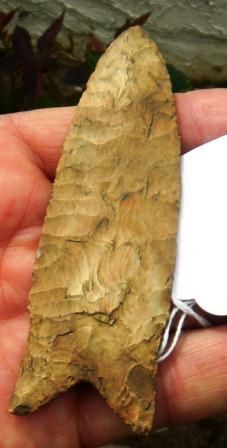 Dalton point, cream chert, found in Colorado, exemplary example, approximately 4 1/4 by 1 15/16. Shipping $15.00. Tiny chips