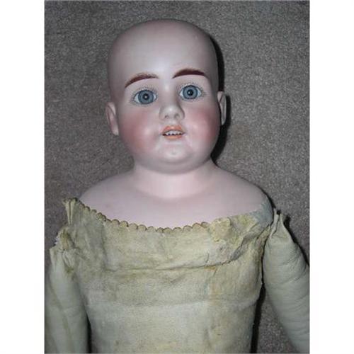 Damaged German Bisque Doll to fix up. Someone has tried to fix bisque damage but you can see a build of paint in back and there is a crack on forehead. Doll has blue set eyes. Body has replaced arms, hands and lower legs need help. Doll is sold as is and needs TLC. Comes from a smoke free environment. Buyer to pay $20 for shipping, handling and insurance. Thanks for viewing.