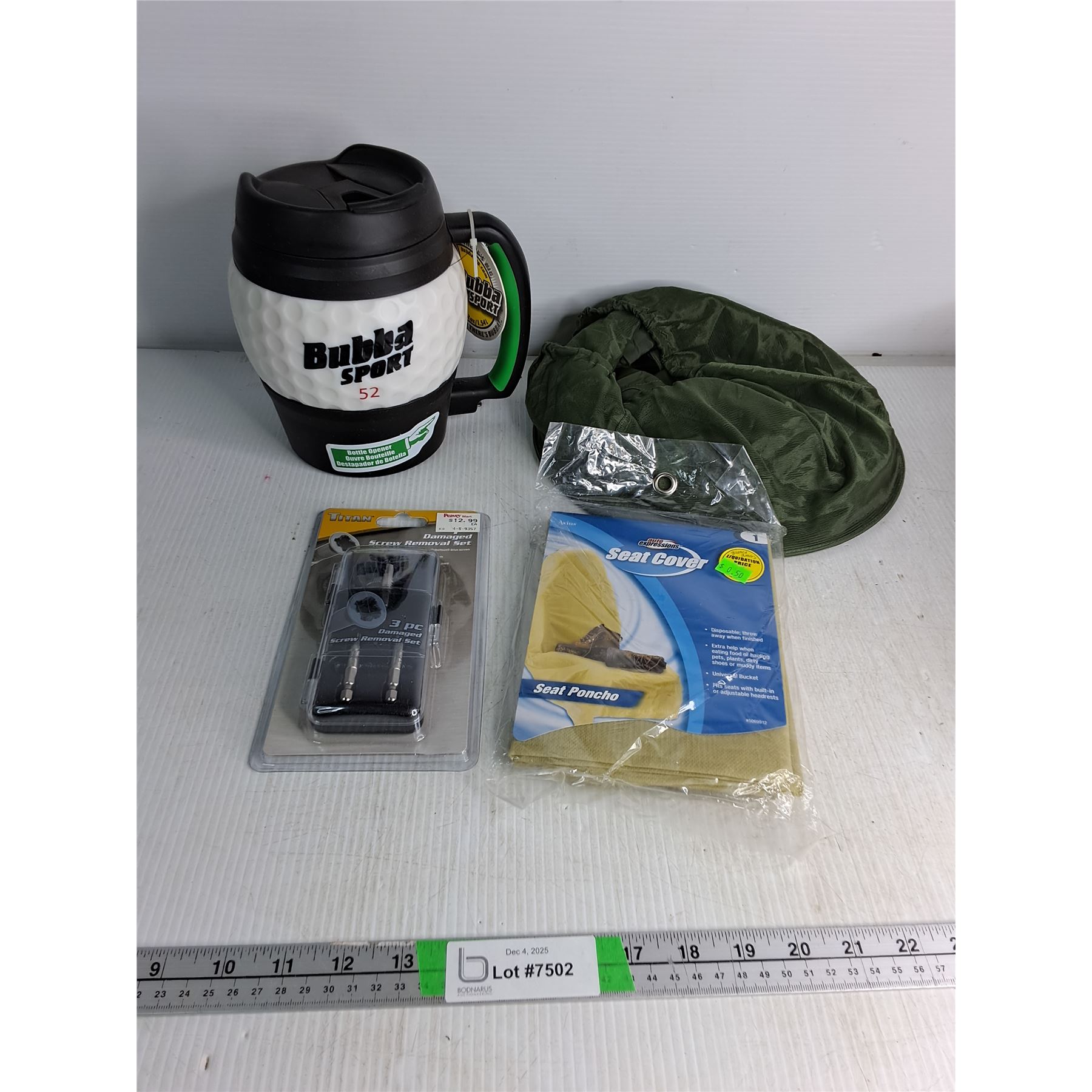 Damaged Screw Removal Set (NIB), Seat Cover, Water Jug