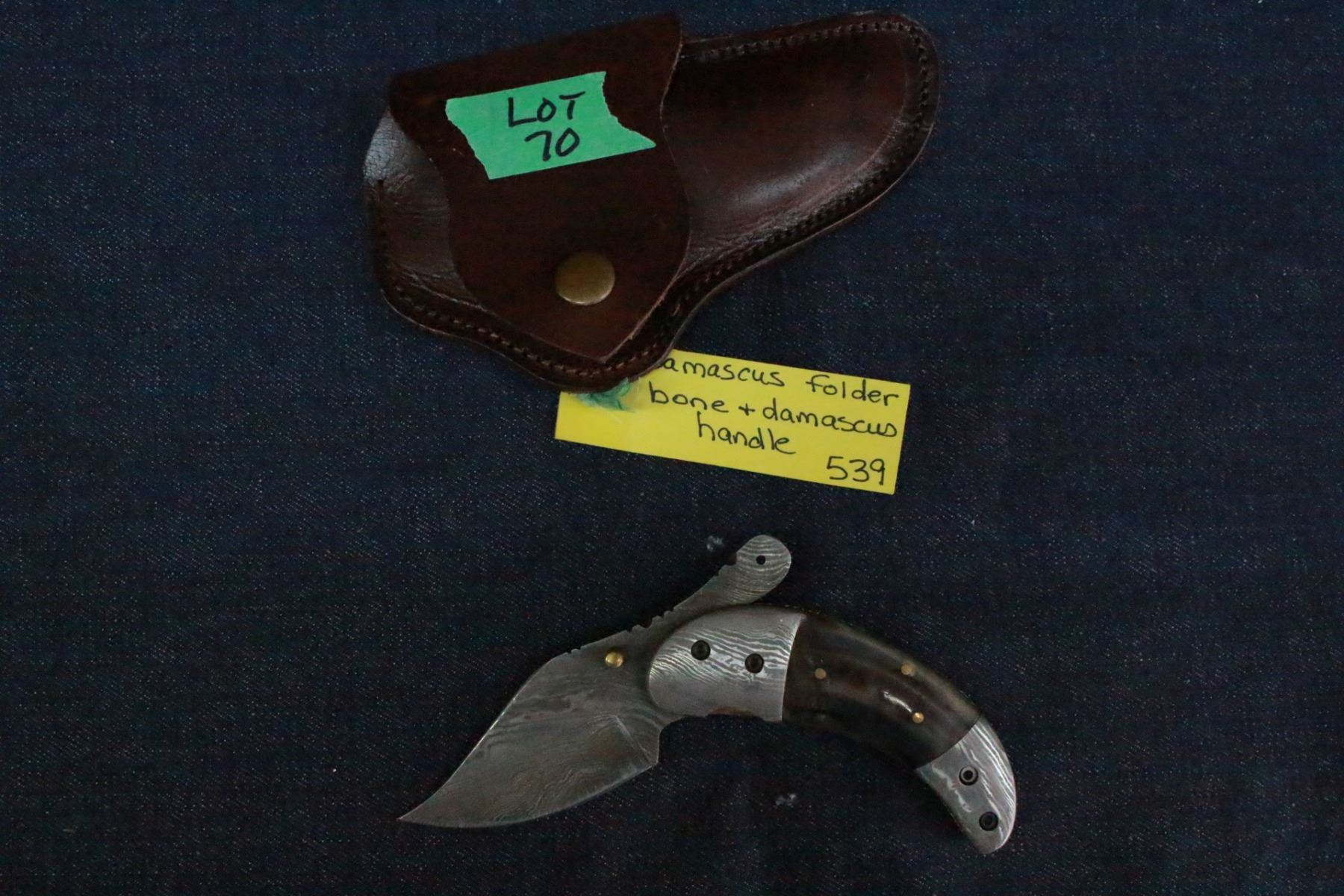 One of a Kind, 3" Blade; Bone & Damascus Handle; Sheath