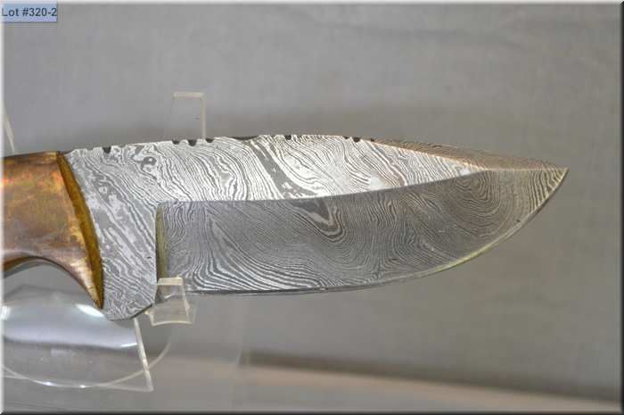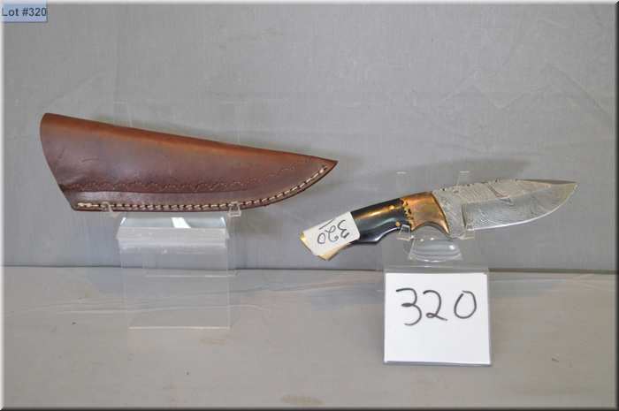 Damascus Hand Forged Hunting Knife w/ black & brass handle w/ 4" drop point blade w/leather sheath