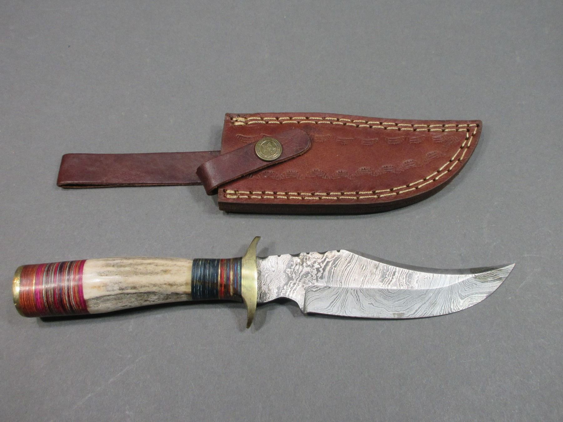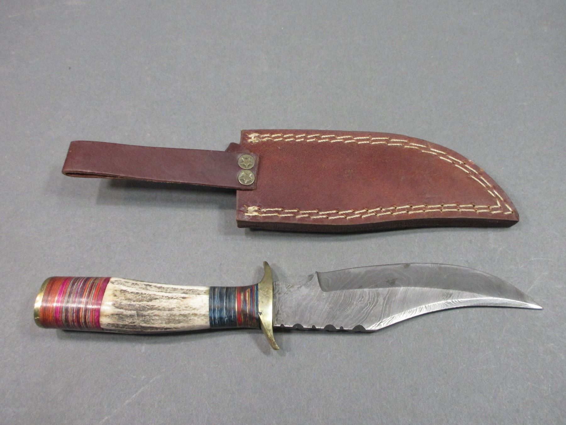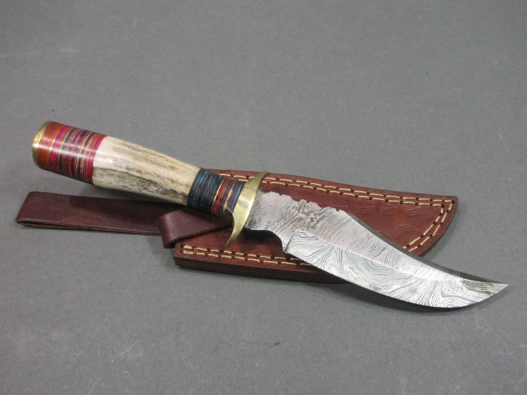 Damascus Knife With Sheath- 5.25" Blade- 4.25" Handle