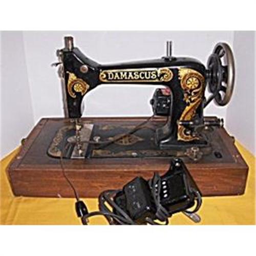<tr><td><font size="2" face="Arial, Helvetica, sans-serif"><strong><font color="#000033">Title:</font></strong>Damascus Sewing Machine w/ wooden case</font></td></tr>