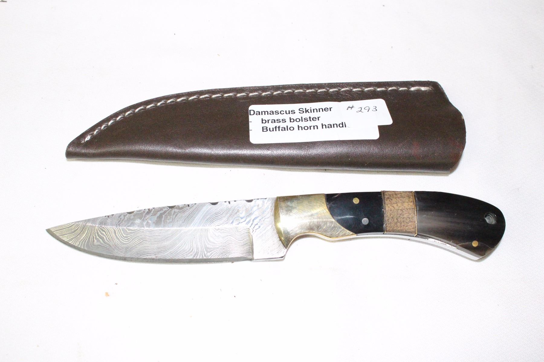 Damascus Skinning Knife - Buffalo Horn Handle - w/Sheath