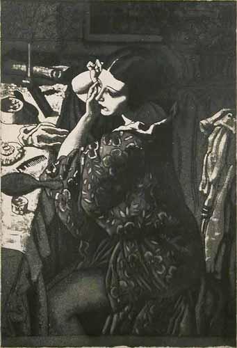 Dame Laura Knight (1877-1970) aquatint, Actress at a dressing table, signed in pencil, 11.75 x 9.75 ins. £600-800
