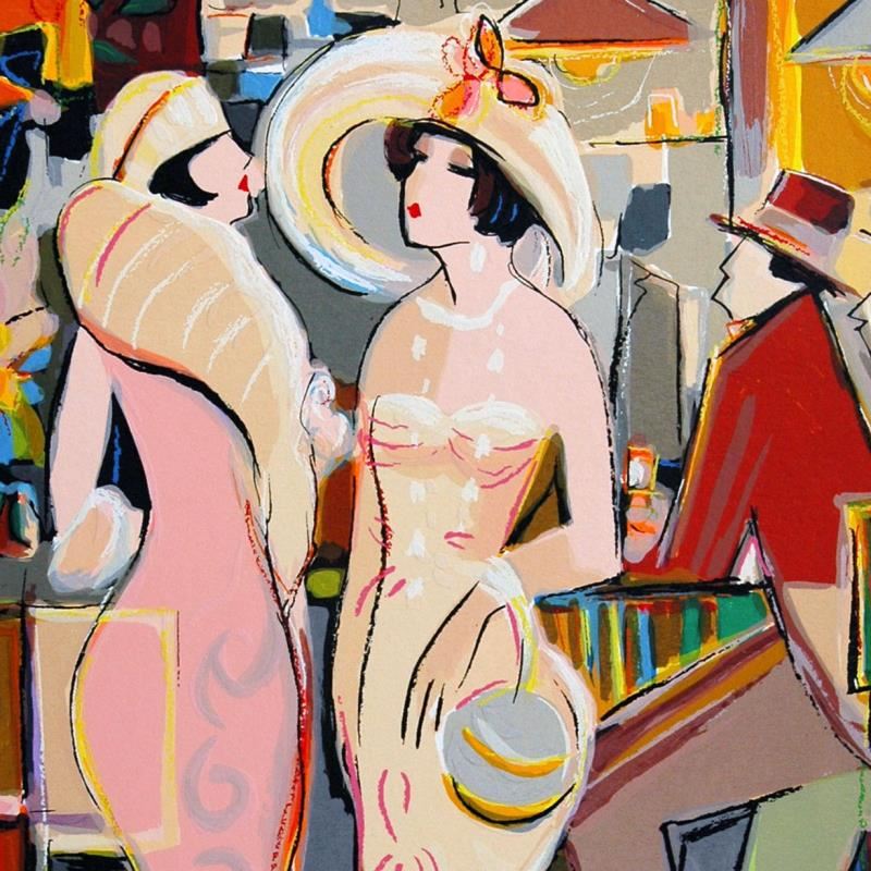 "Dames Elegantes" is a limited edition serigraph on paper by Isaac Maimon, numbered and hand signed by the artist. Includes Letter of Authenticity. Measures approx. 16" x 20.5" (border), 13" x 17" (image).