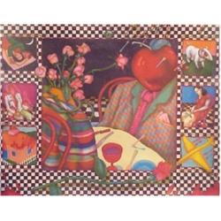 TOGETHER ONCE WERE DREAMING, color aquatint, signed in pencil, from the numbered edition 65, sheet 23 x 29", nicely framed. $200/400