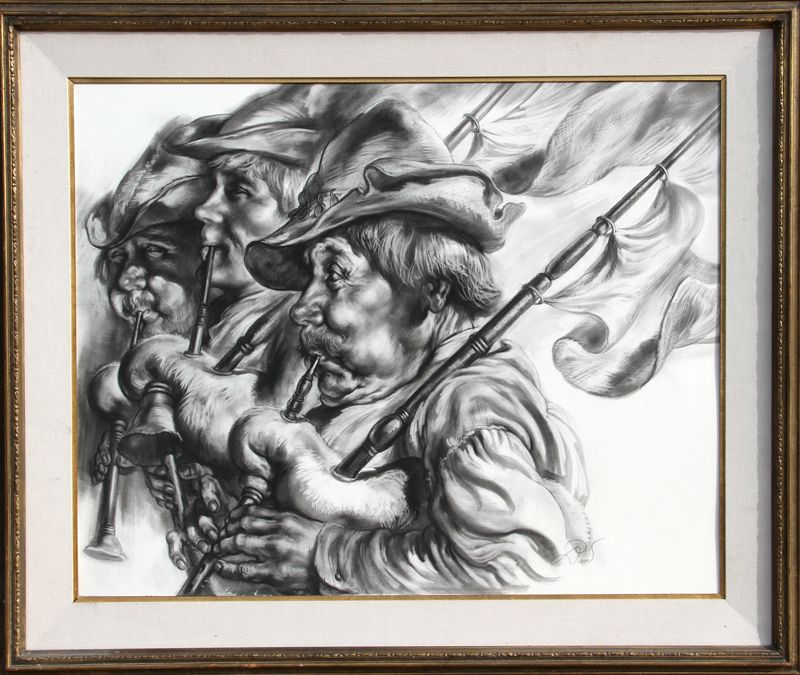 Dan, Bagpipers, Charcoal Drawing